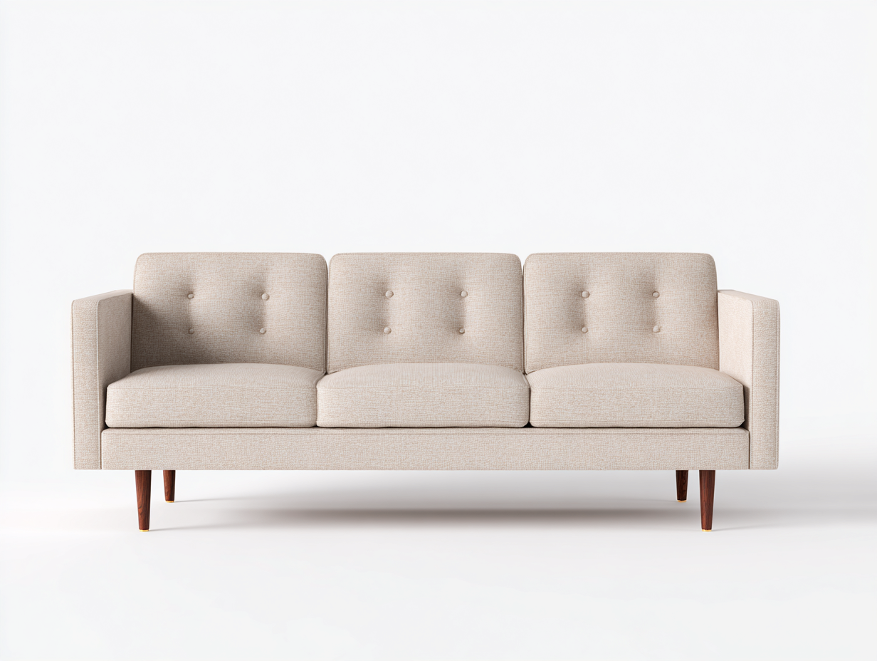 Questo divano 3 posti moderno in tessuto beige offre equilibrio tra comfort e design.